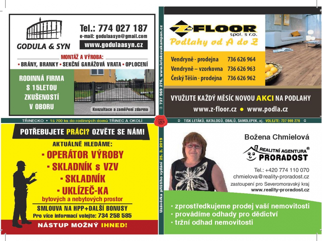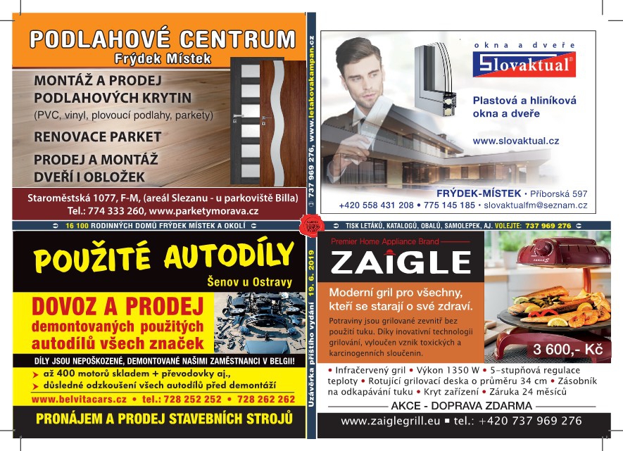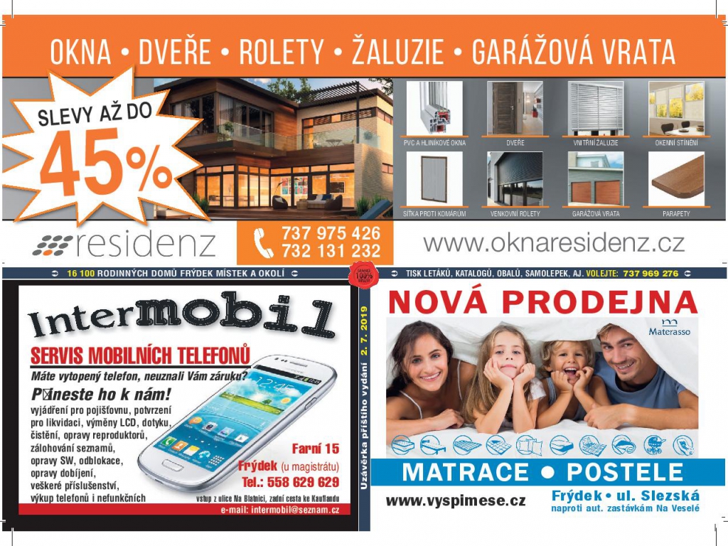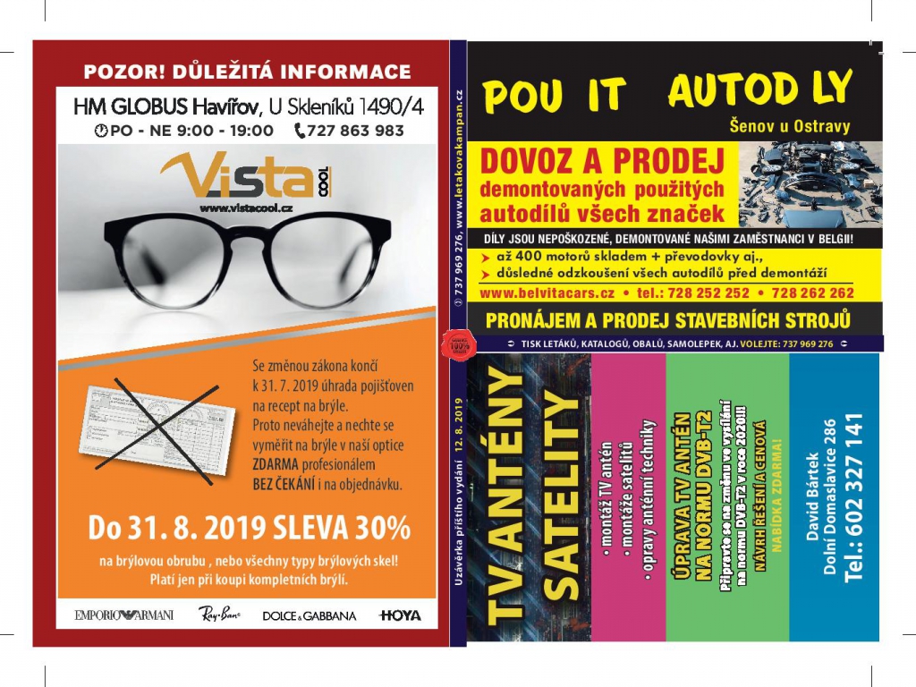 Helcel nábytek, Belvita cars, Nábytek Maxi Orion, Focus Medicus, Slovaktual, Autosalon Kudrna, Okna Residenz, Internet pro každého, Poliklinika Místek, Valmak stav, Remax, Vista Cool, Vyspimese.cz, Poolmont, Intermobil, CD Paliva, Housepro, Řeznictví Múúú, opravmobil.cz, Portas, Interplex, Foldyna zahradní technika, RK Drak, RV úklid, Taxi Čert, Jena nábytek, Autoskla Pilkington, Dachmantechnik, aj.